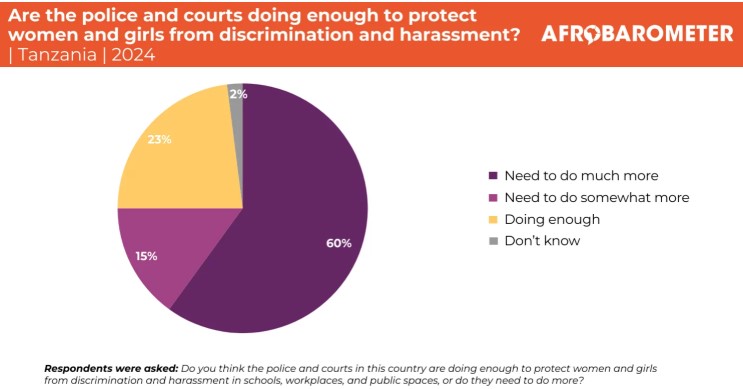 This dispatch provides analysis on the Round 10 of the Afrobarometer Survey capturing citizens’ voices – and in this context depicting that most citizens in Tanzania say police and courts should do more to protect women and girls against discrimination and harassment. Click on View PDF to read more…!